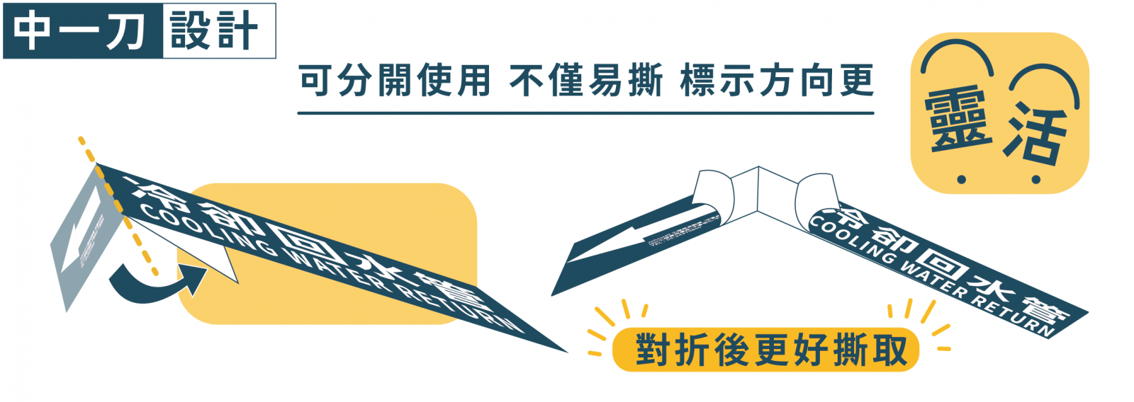 箭頭與字樣可以分開使用,使用時先對折後撕取更容易,方便靈活標示流向。